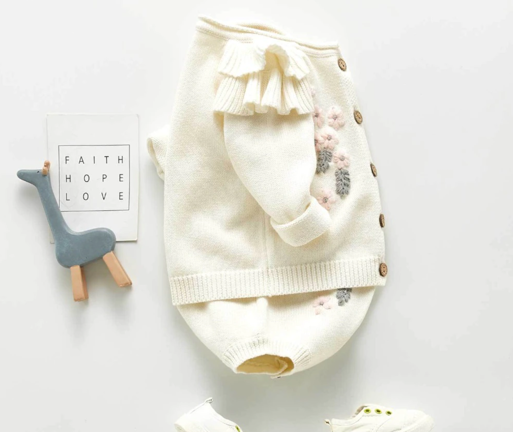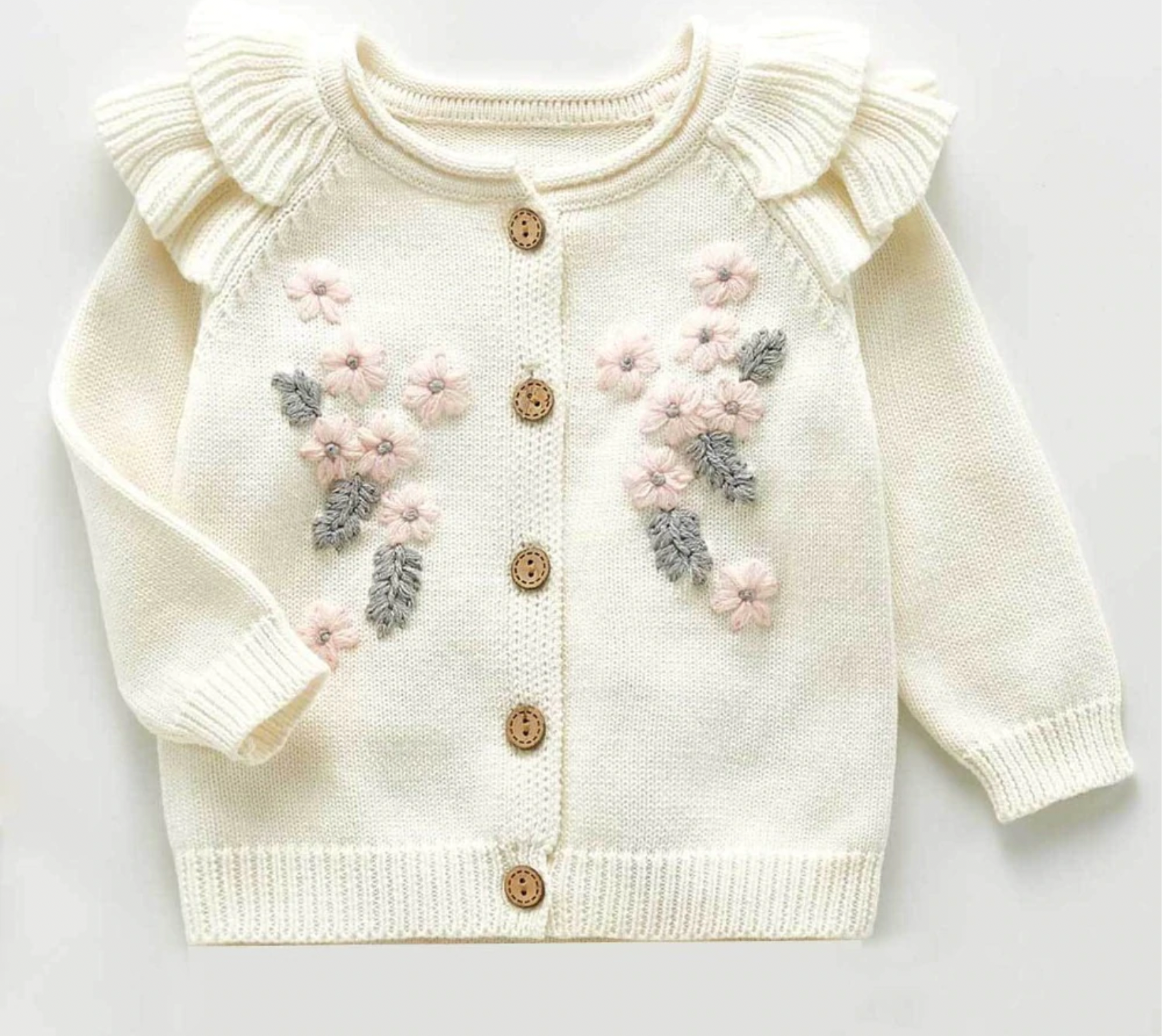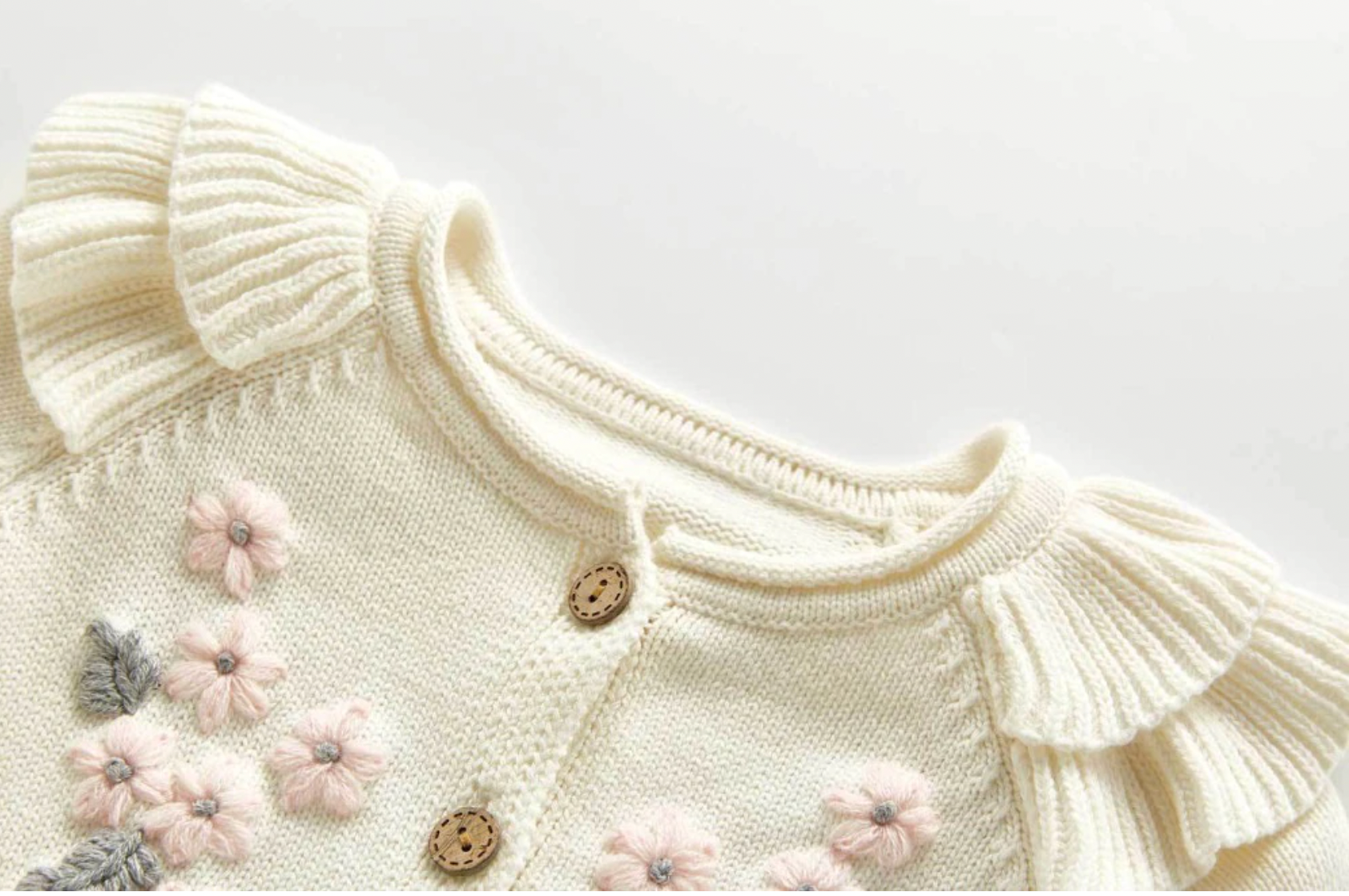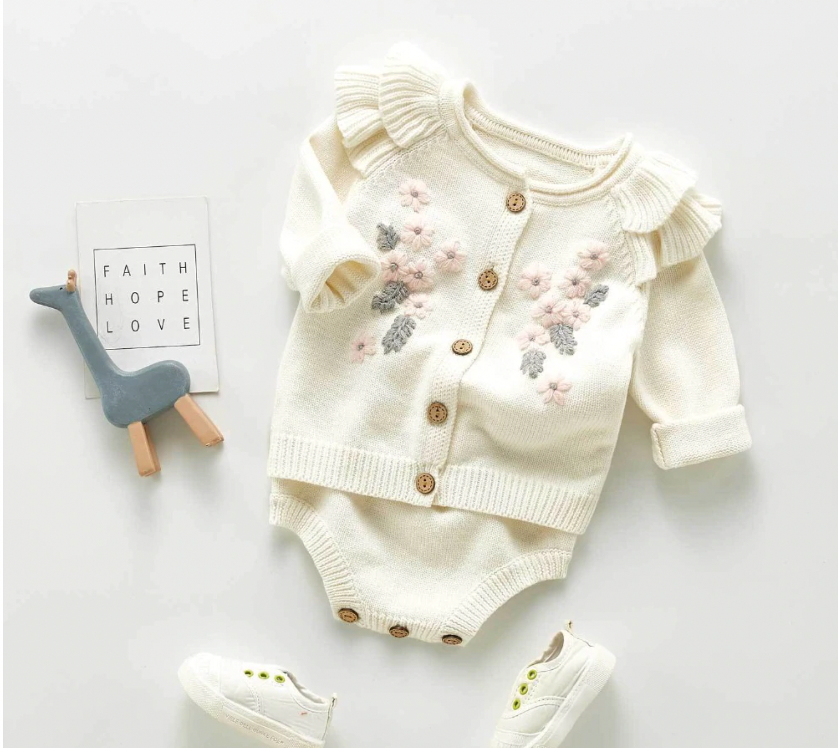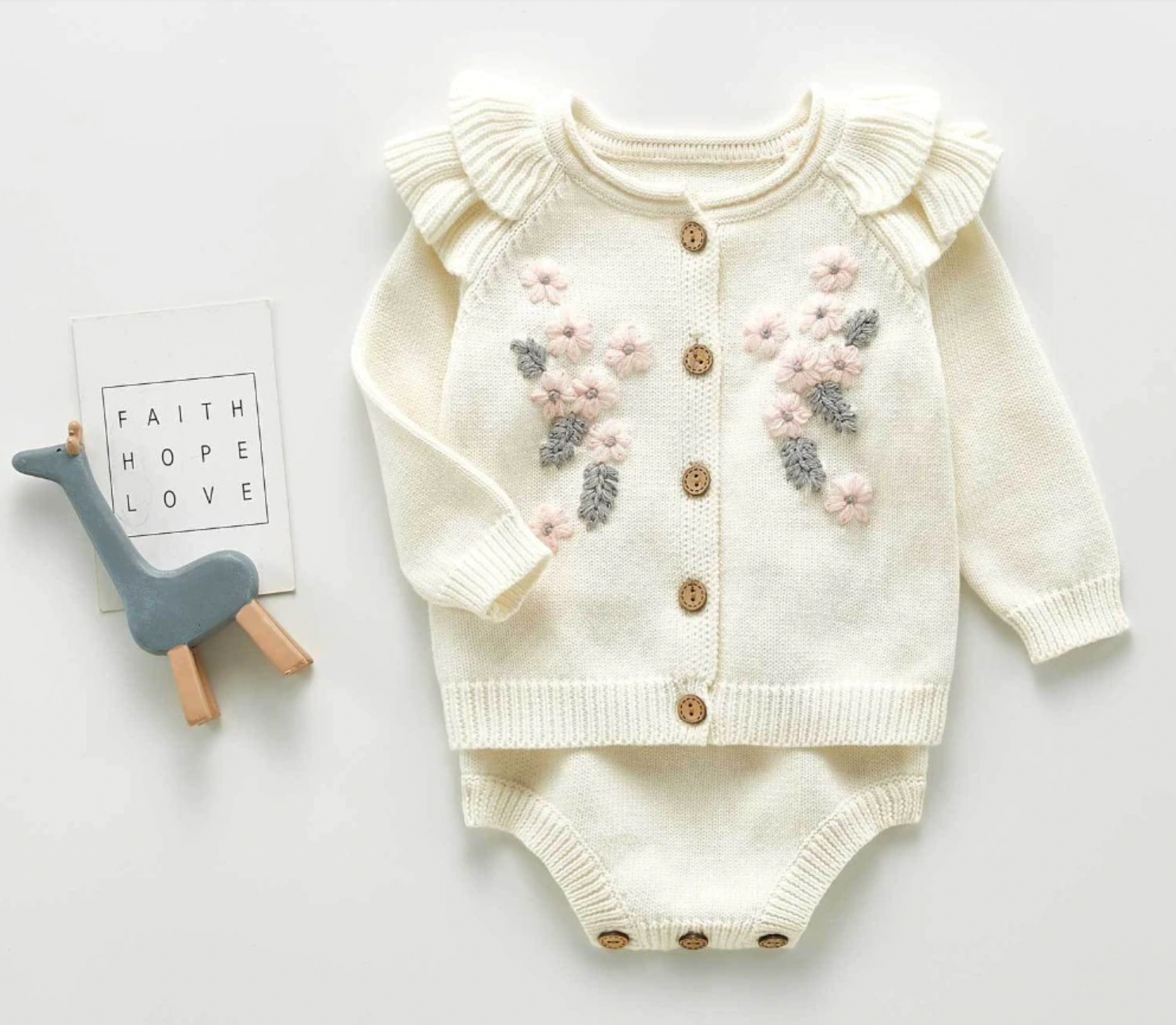 Knitted Flower Cardigan Co-ord - Cream
